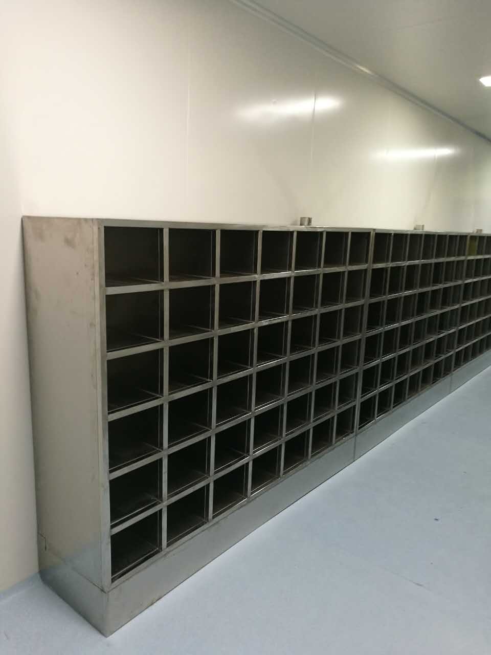 采用優(yōu)質(zhì)不銹鋼制作,廣泛運(yùn)用在制藥車間、潔凈電子廠房等無塵環(huán)境下。不銹鋼組合鞋柜可根據(jù)無塵室內(nèi)現(xiàn)場環(huán)境而定制,例如:底部及頂部是否需要開具R50圓?。ㄓ蠠o塵室外圓柱鋁材),鞋柜是否需要分隔等。不銹鋼鞋柜樣式及尺寸均可以來樣加工定制