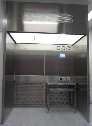 PLC百級稱量室由工作區(qū)、回風(fēng)箱體、風(fēng)機箱體、出風(fēng)箱體及外箱體幾大部分拼裝而成。控制面板位于設(shè)備內(nèi)部工作區(qū)正面,控制面板采用輕觸型LED控制面板,可以控制風(fēng)機起停,調(diào)節(jié)風(fēng)機工況,調(diào)整工作區(qū)需要的風(fēng)速(當(dāng)設(shè)備安裝使用后,需由專門人員調(diào)節(jié)工況)。在其旁有壓差計,測試過濾器的阻力在送風(fēng)箱體的內(nèi)部還有排風(fēng)調(diào)節(jié)板,可以調(diào)節(jié)設(shè)備的排風(fēng)量在合理的范圍內(nèi)(設(shè)備安裝就位后,由專業(yè)人員設(shè)試,請勿擅自調(diào)整)